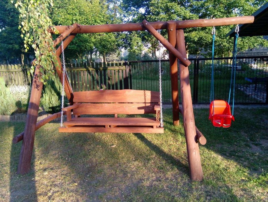 Huśtawki place zabaw meble ogrodowe lite drewno.